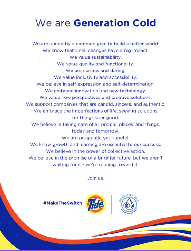 Tide is seeking to increase awareness about the benefits of cold water washing:
